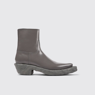 Side view of Venga Gray-Black Leather Zip Bootie